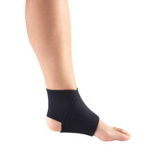 - Four-way stretch neoprene material provides even compression over the prominences of the ankle